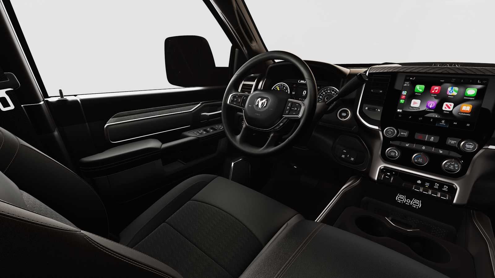 ENGINE: 6.7L I6 CUMMINS HO TURBO DIESEL Selective Catalytic Reduction (Urea), Dual 730 Amp Maintenance Free Batteries, GVWR: 11,800 lb, Cummins Turbo Diesel Badge, Heavy Duty Engine Cooling, Current Generation Engine Controller, Diesel Exhaust Brake, Supplemental Heater, 3.42 Axle Ratio, Front Bumper Sight Shields, Capless Fuel Fill w/o Discriminator, BIG HORN LEVEL 2 EQUIPMENT GROUP Blind Spot & Cross Path Detection, LED Tail Lamps, Red Tail Lamp Bezels, Rear View Auto Dim Mirror, Power Adjustable Pedals, Rear Power Sliding Window, Rear Dome w/On/Off Switch Lamp, Glove Box Lamp, Auto Power-Folding Mirrors, Footwell Courtesy Lamp, Heated Front Seats, Heated Steering Wheel, Foam Bottle Insert (Door Trim Panel), Exterior 115V AC Outlet, Dampened Tailgate, Big Horn IP Badge, Forward & Reverse Utility Lights, Locking Lower Glove Box, Remote Start System, 400W Inverter, 9 Alpine Speakers w/Subwoofer, Power Heated Fold Telescopic Mirrors, Dual Wireless Charging Pad, Steering Wheel Mounted Audio Controls, Dual Glove Boxes, 115V Auxiliary Front Power Outlet, Cluster 7.0 TFT Color Display, Universal Garage Door Opener, Luxury Steering Wheel, BED UTILITY GROUP MOPAR Spray In Bedliner, LED Bed Lighting, MOPAR Deployable Bed Step, MOPAR FRONT & REAR RUBBER FLOOR MATS, TRANSMISSION: 8-SPEED TORQUEFLITE HD AUTOMATIC 12.0 Single Rear Wheel Axle, BLACK, PREMIUM CLOTH BUCKET SEATS Bucket Seats, Rear 60/40 Folding Seat, Power Adjust 8-Way Driver Seat, Folding Flat Load Floor Storage, Front Seat Back Map Pockets, Power 2-Way Driver Lumbar Adjust, Full Length Upgraded Floor Console.
