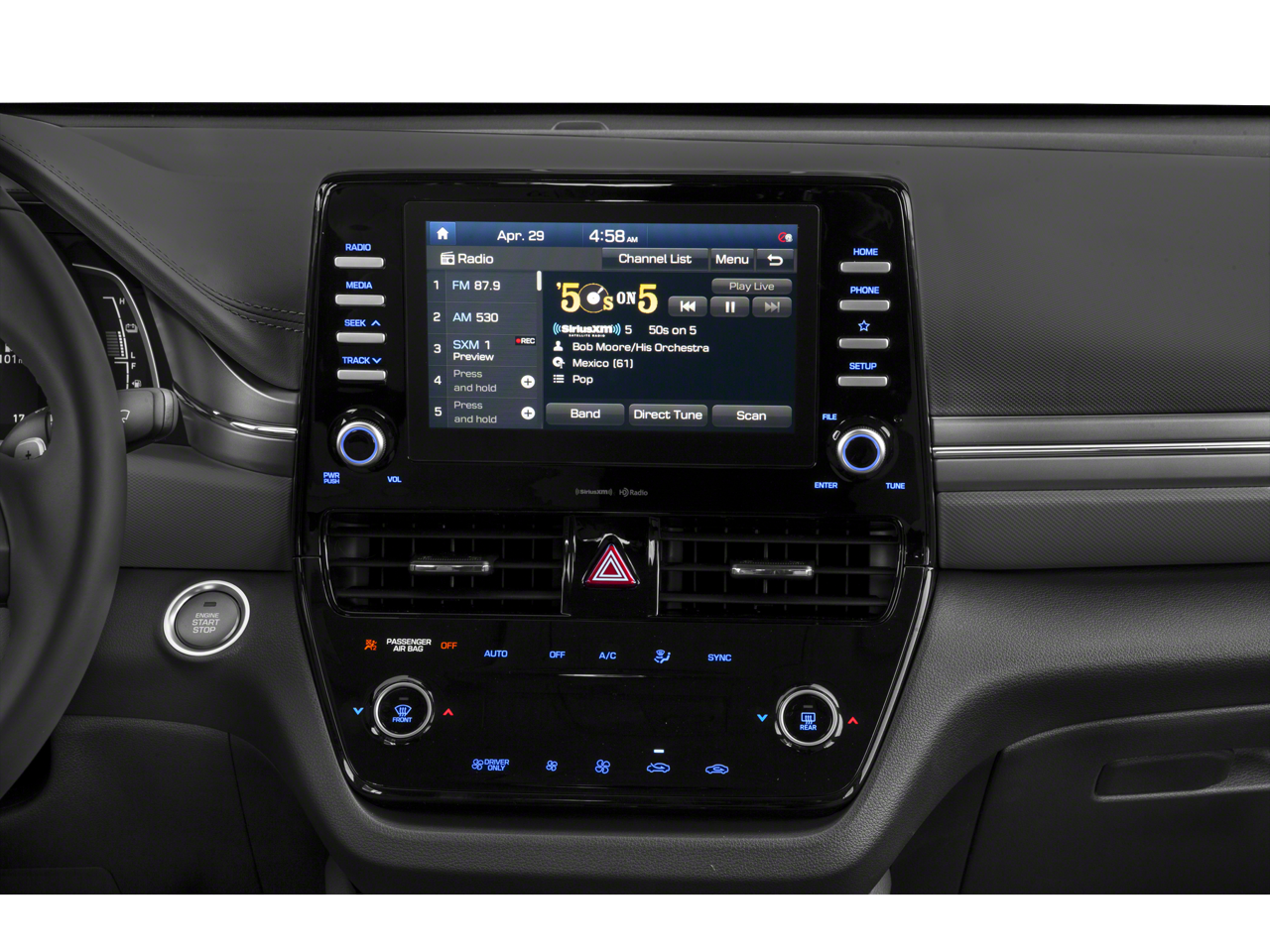 - Radio: AM/FM/HD Display Audio -inc: 8" high resolution touchscreen, USB input, wireless Apple CarPlay and Android Auto, speed-sensitive automatic volume control, integrated Bluetooth® w/phonebook transfer and voice recognition, Blue Link connected car services and SiriusXM satellite radio, SiriusXM is not available in AK and HI